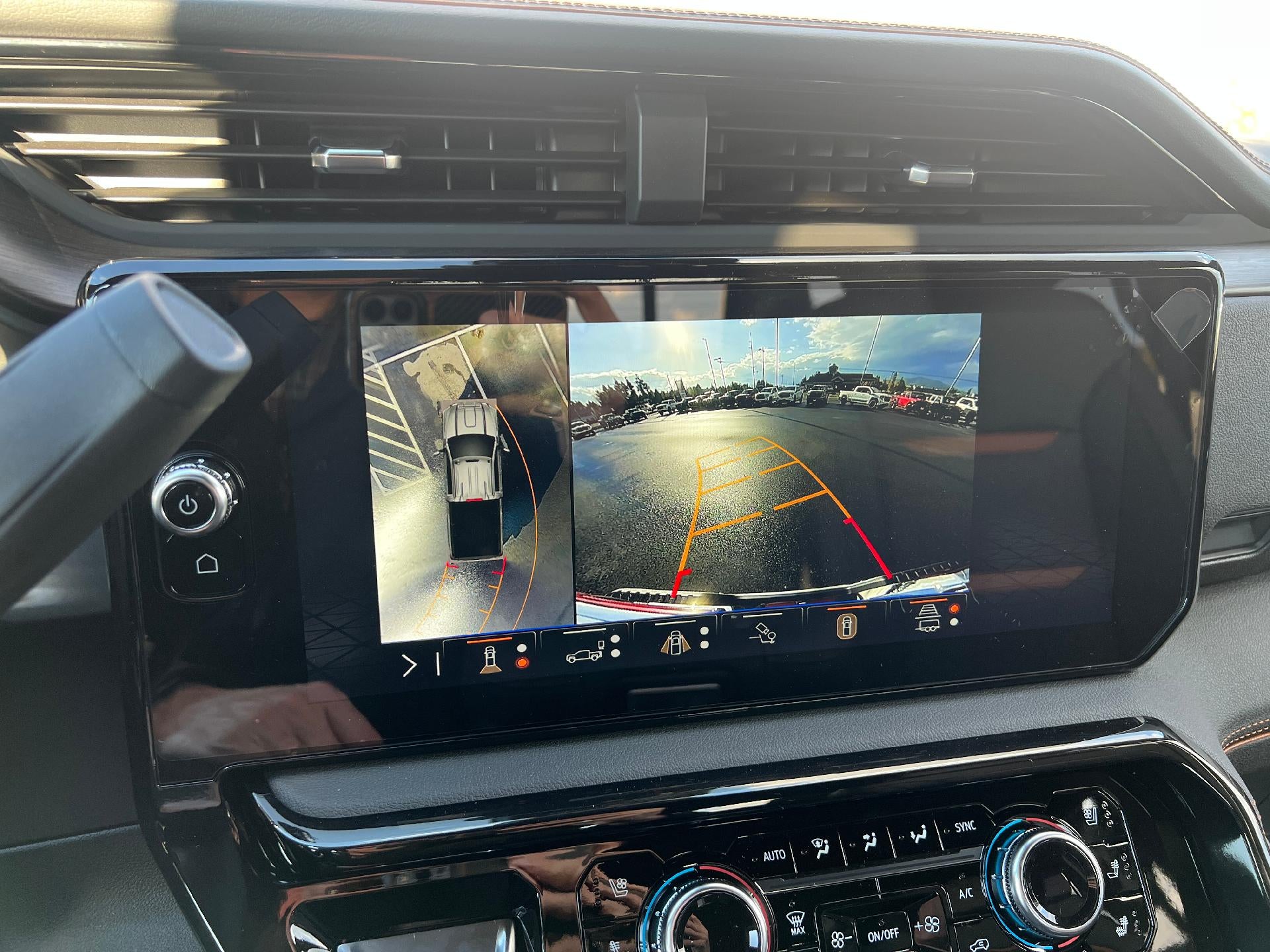 - Allows driver to see inside the cargo bed on the infotainment display to help with 5th wheel or gooseneck hitching and to check cargo